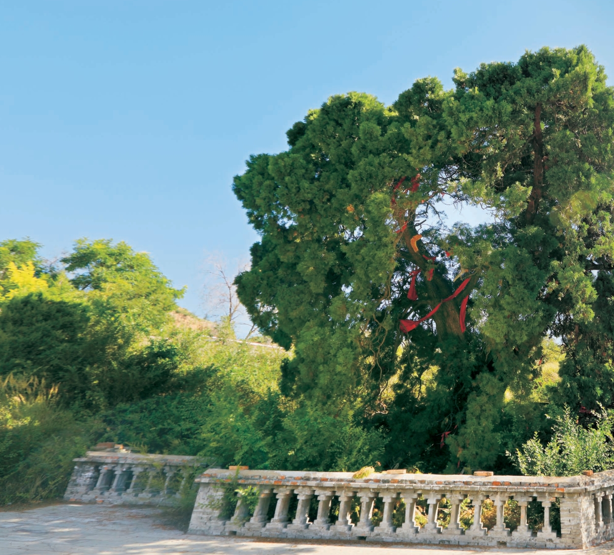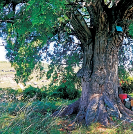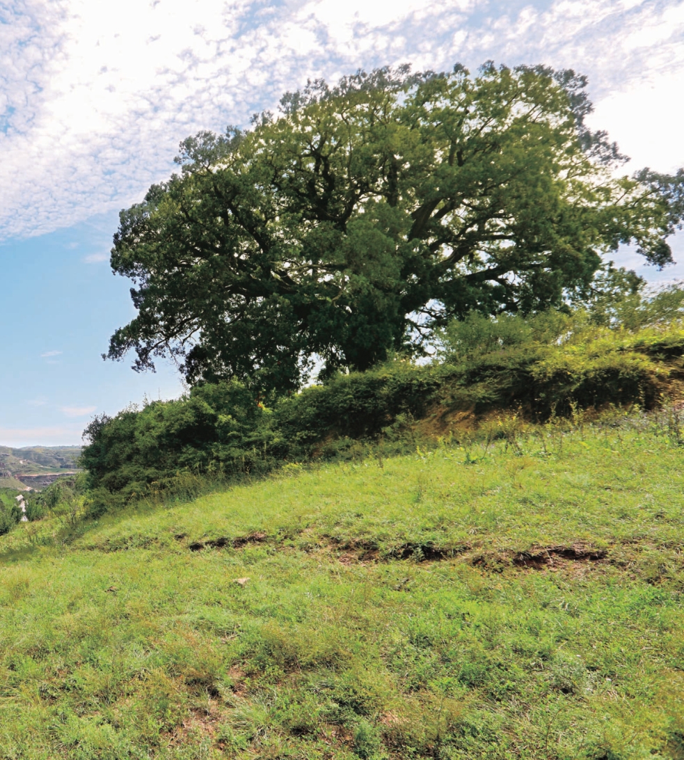 此树生长在神木市沙峁镇杨家坪村庙峁。柏树主干粗壮苍劲,侧枝盘曲,枝繁叶茂,巨冠如伞,壮丽大气,具有强烈的历史厚重感和底蕴。