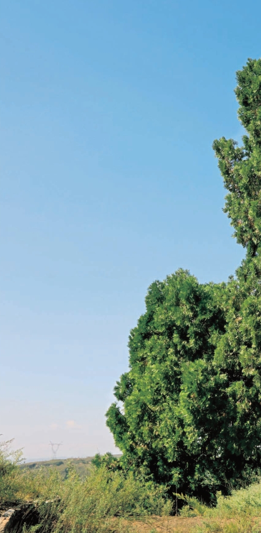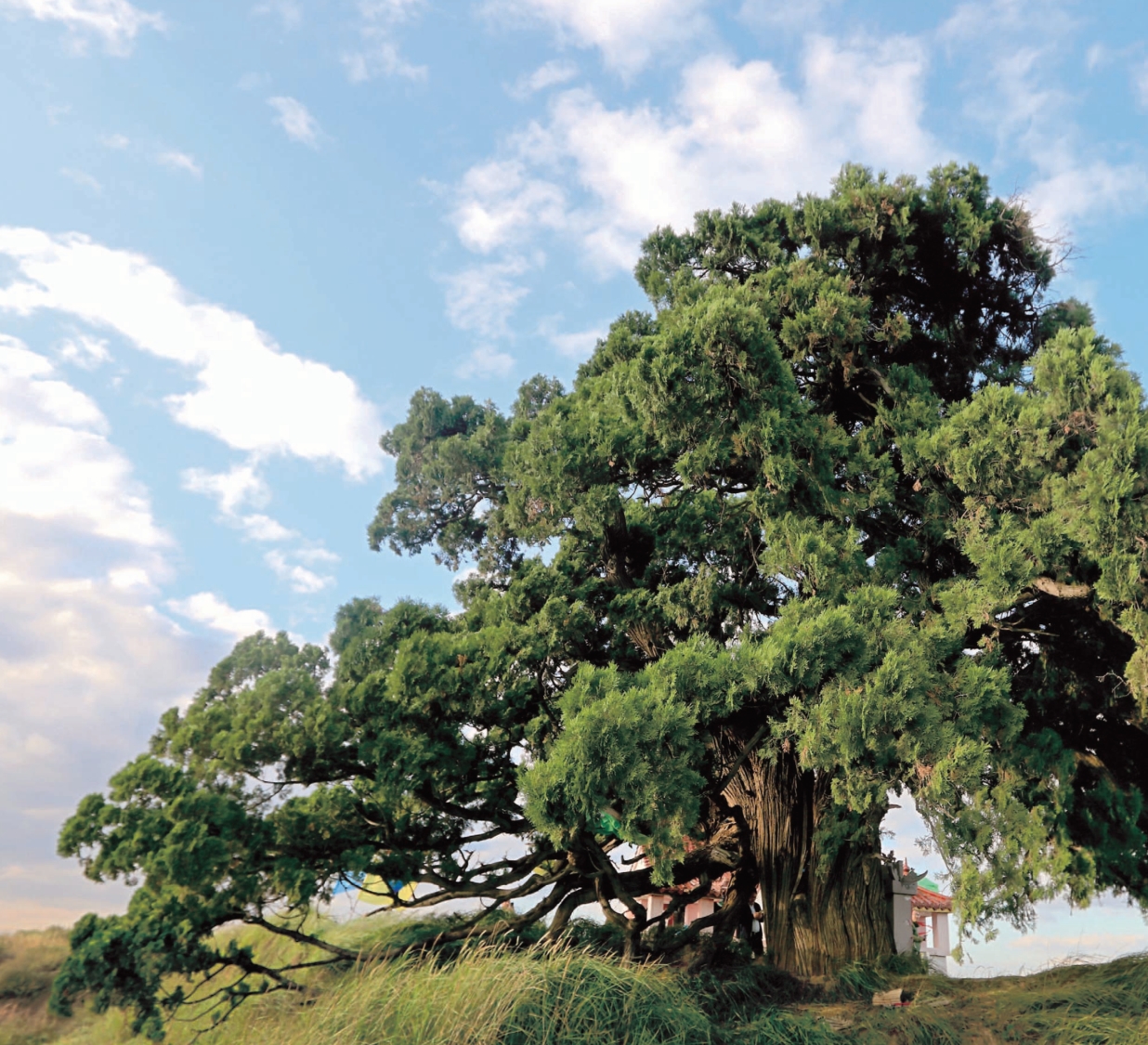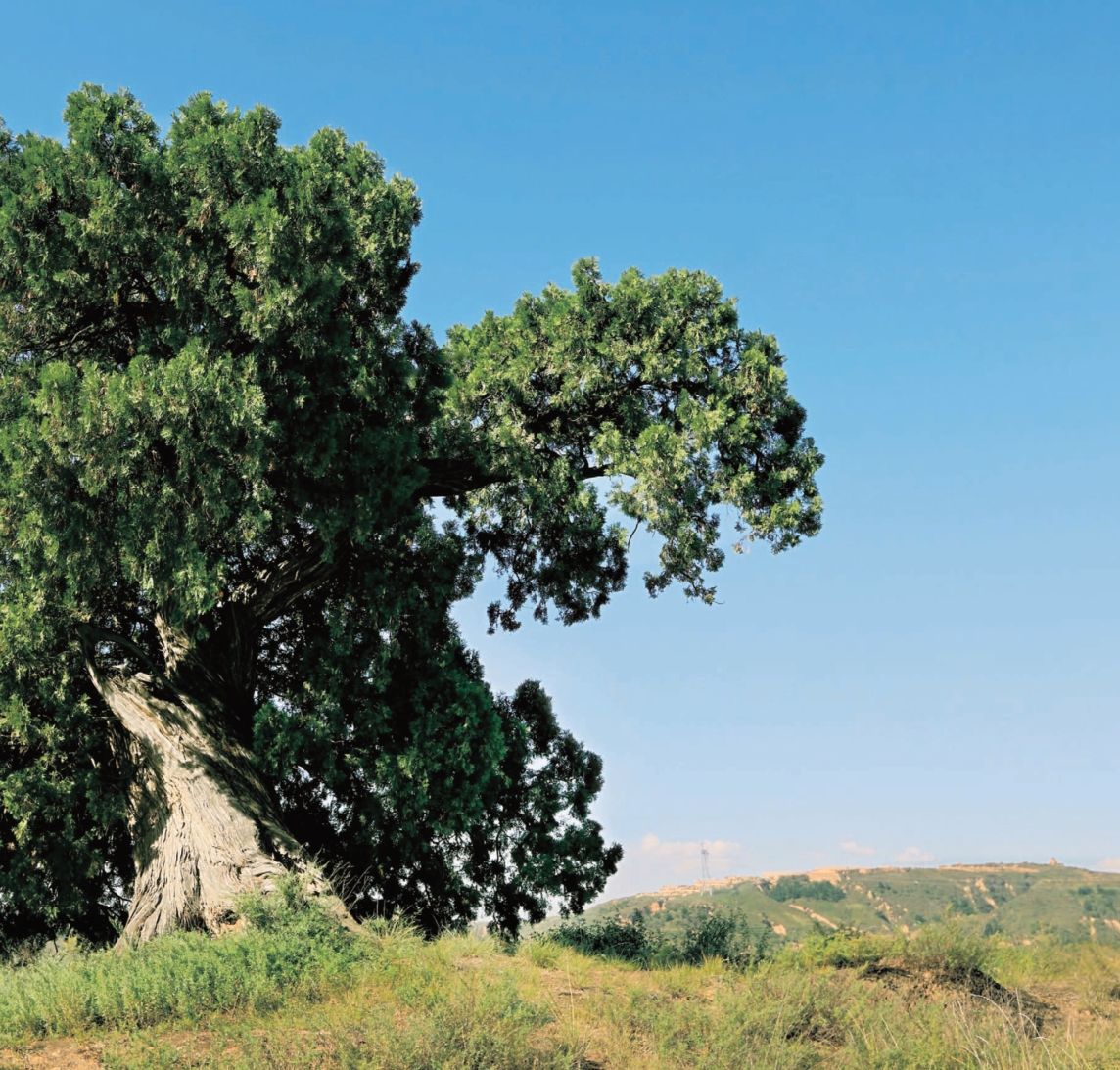 此树生长在神木市永兴办事处西坬村山神庙旁。主干中空,向一侧倾斜,树干崎岖,枝叶稀疏,一身苍劲超拔悲壮的风骨,让人肃然起敬。