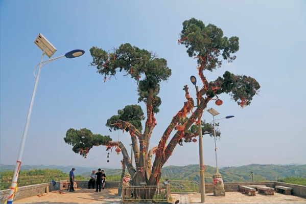 此树生长在佳县刘国具乡白家铺村柏树庙旁。主干向南倾斜严重开裂,部分根外露。相传金朝章宗四年(1193)暑夏,板浮图晋升葭州州官,从京都上任,路经盐沟时突发痢疾,行至柏树旁卧柏树而终。夫人闻讯从家中赶到,搬开棺材看望夫君最后一眼,当即中毒身亡,遂夫妇合葬路南小山丘上。板浮图系古葭州浮图峪人,《葭州志》记载板浮图墓在州北90里白家铺村东。群众为纪念这位父母官,在柏树旁修庙一座,取名“搬木头庙”,后来被群众慢慢叫成“柏树庙”,一直沿用至今。