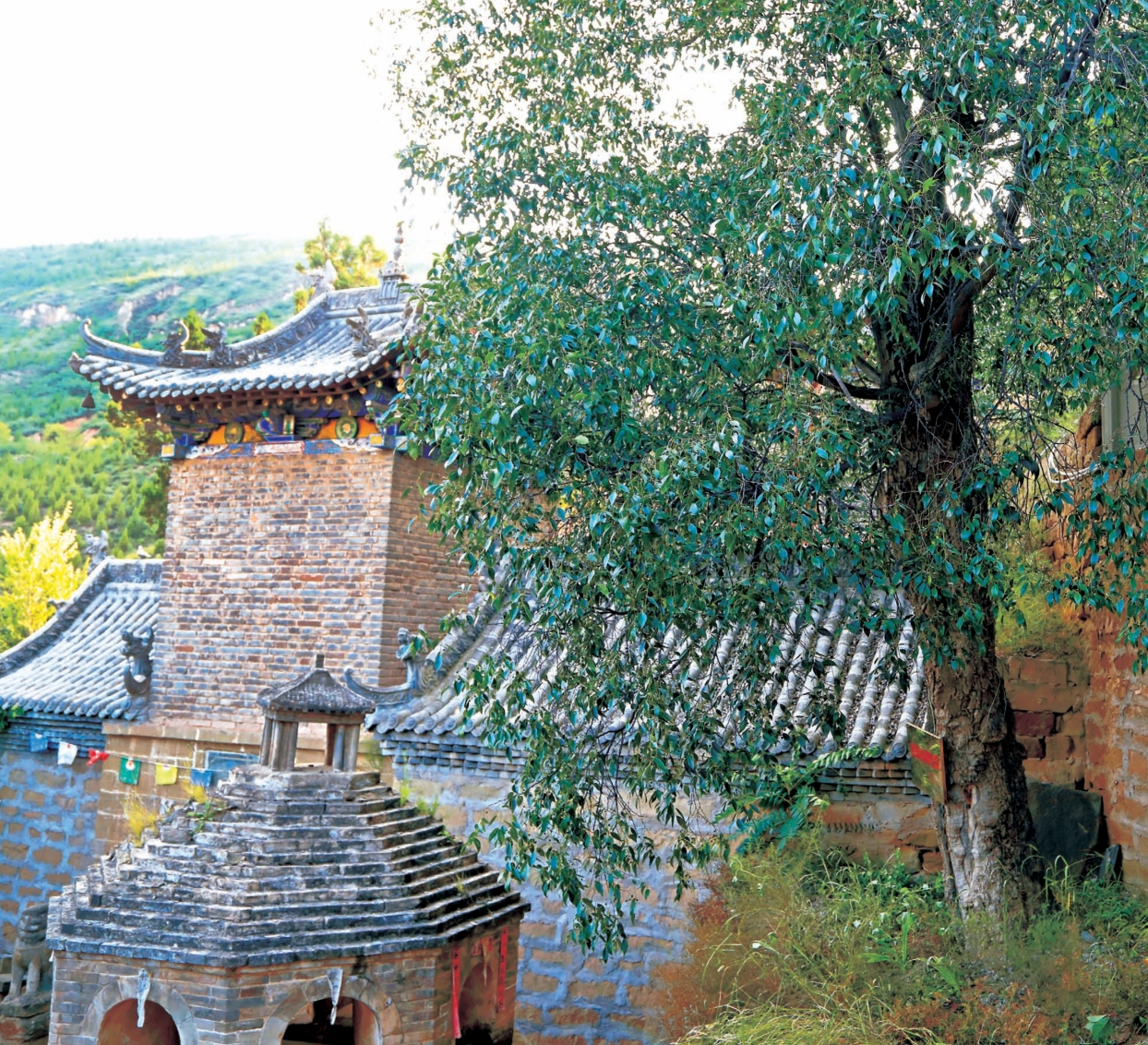 此树生长在米脂县海会寺左右二水交会的前石崖高岩下。主干1.8米处分杈,内部腐烂,冠幅一半枝条枯死,树龄850年。古树生长的右面看起来完整无缝,竟然长出一榆树,树芽新条随其年长月久树身壮大,枝叶茂盛。树后背山有脉,蜿蜒连接白云山,树下临水有源,秀水弯曲流向无定河。树生岩上,壁陡立险、峻奇形异,似神仙现身,狮豫麒麟,行人止步无不称奇。据庙碑记载榆树约有800年,因多位村民梦见榆树现身,被敬畏为“神树”。