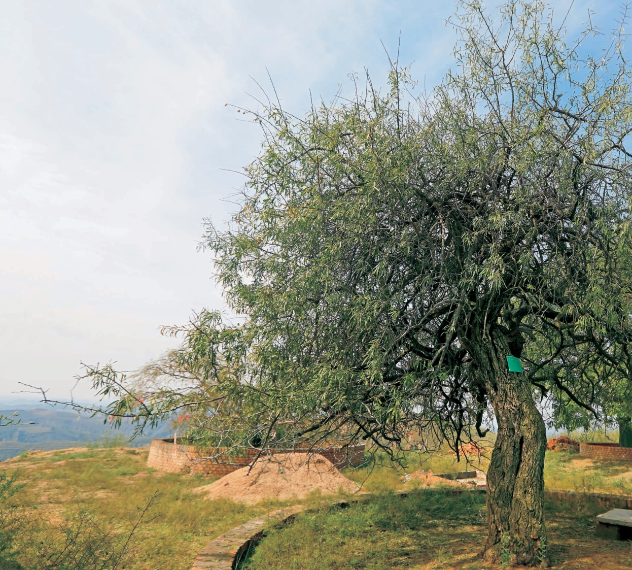 此树生长在子洲县三川口镇墕头村庙坬。树干粗壮,中间开裂,但生长旺盛,枝头挂满酸枣。据村民介绍,在1954年的时候有八棵同样的酸枣树,“文革”时期被砍,剩下这唯一的一棵,当地人视此树为神树。每年当酸枣成熟时,人们都来此吃上几个酸枣,以求消灾免难,祈求平安。在每年阴历三月九日唱戏时,人们就在树上挂红带,以求保佑一年四季平安。