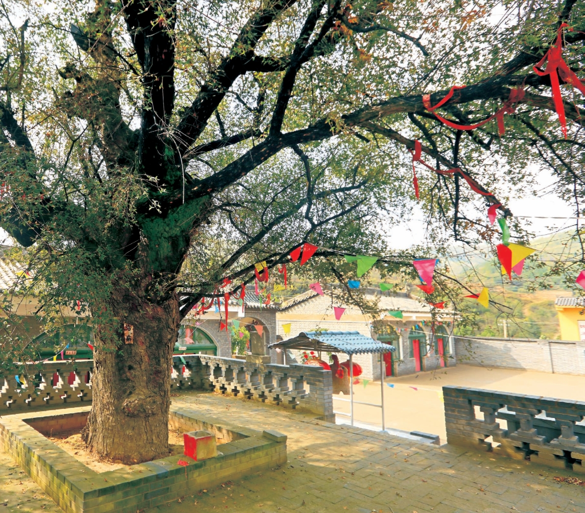 此树生长在清涧县下二十里铺镇梨家湾村村中。树干粗壮虬结,枝干伸展,冠大荫浓。