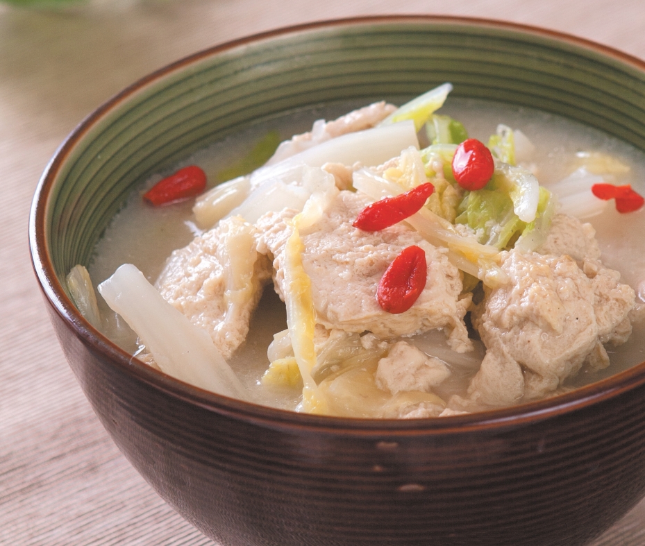 2.锅置火上,放植物油烧至七成热,下入葱花煸炒出香味,倒入大白菜翻炒3分钟后,再倒入适量清水没过食材,放入冻豆腐和枸杞子,大火烧开后转中火煮10分钟,出锅前加适量精盐和鸡精即可。