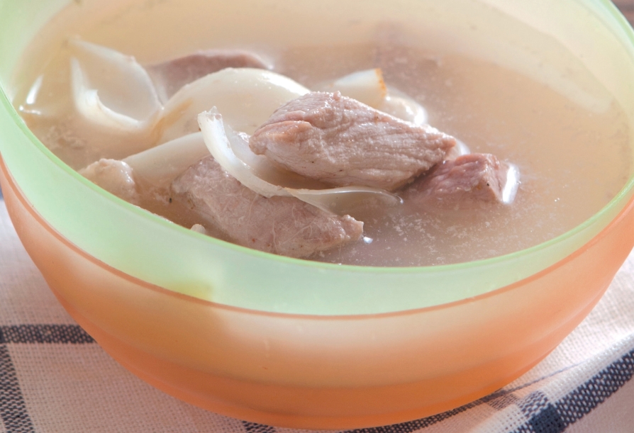 2.全部食材放入净锅中,放入姜片、清水,大火煮开后转小火炖1小时,出锅前加适量精盐调味即可。