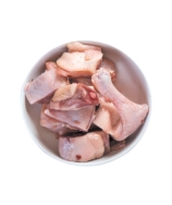 2.炒锅置火上,倒入清水,乌鸡冷水下锅焯烫5~10分钟,用勺子撇净血沫,捞出鸡块沥水。