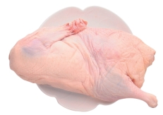1.白萝卜去皮,切成滚刀块,放入容器内,加入精盐、白醋腌10~20分钟;白条鸭剁成块。