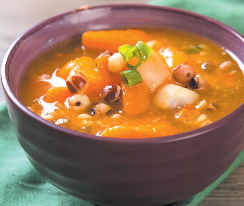 1.芡实洗净,焯烫后洗净;南瓜洗净,去皮,切成块;绿豆、薏米洗净。