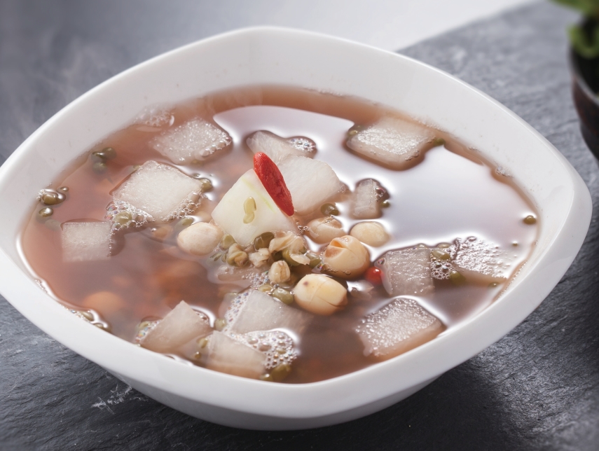冬瓜味甘、性寒,有消热、利水、消肿的功效。常饮此汤对肝硬化腹水、高血压、肾炎、等疾病有良好的辅助治疗作用。