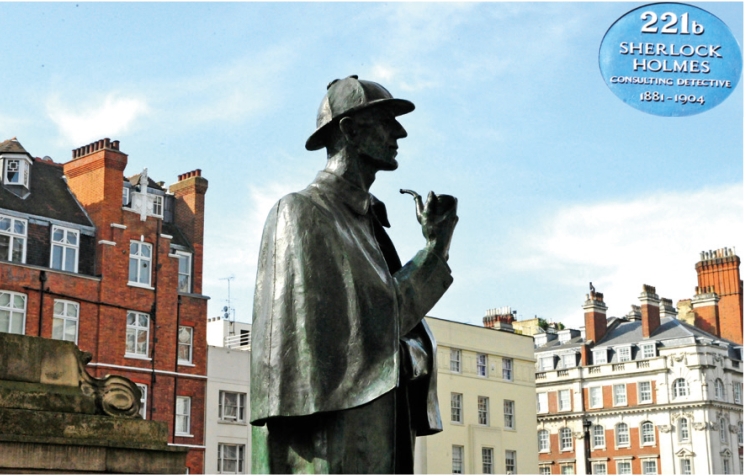 在体会到人与人之间缺乏信任后,沉默就是最好的自我保护手段。固有的阶层意识让英国人倾向于警戒和寡言。沉默寡言背后,就是习惯开动脑筋进行推理和判断。福尔摩斯就是这样一位沉默寡言的大侦探。他话语不多,善于从对方的表情和言语中捕捉破案线索,通过蛛丝马迹寻找真相。虽然福尔摩斯是小说中的虚构人物,却集中体现了英国人的侦探意识和推理爱好。沉默冷峻的福尔摩斯雕像就矗立在伦敦贝克街旁的地铁站。他的“住宅”门牌是在贝克街221B。1936 年伦敦城市扩建时,设计者根据小说中的描述,把福尔摩斯的家安置在此处,里面摆放了19 世纪的家具和侦探设备,简直就是福尔摩斯故居博物馆。