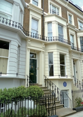 生活在伦敦的名人是幸运的。即使在世时没有引起当地居民的注意,待他们去世后,也会得到应有的尊重。那些名人居住过的寓所外墙上,都钉着一个圆形搪瓷蓝牌,上面写着名人的名字、职业、生卒年月以及居住在此的时间。这个生动的坐标,使得一段生命故事变得可触可摸。