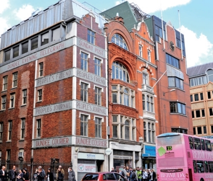 舰队街的老建筑上还可见当年的新闻媒体广告