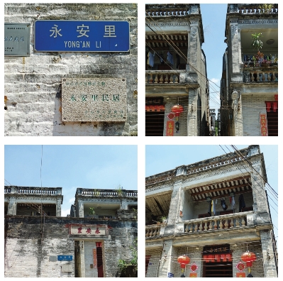 整个永安里民居群有四幢八户人家,每幢楼房均为两间两层。对于永安里的历史,可查阅的资料并不多,有些说法更是存在不少出入。就拿整个永安里的占地面积来说吧,有的资料说是700多平方米,有的则记有1300平方米,说是由中山规划局测量所得,我也无法确定哪个最准确。