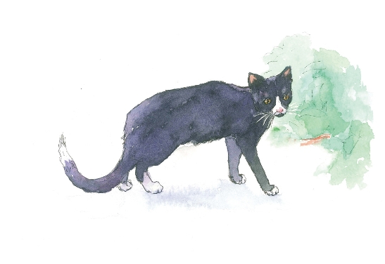 不知道哪里来的一阵怪风,降落庭院后,在院中打着转儿。一只黑猫从房间蹿出,在围墙边停了下来,用如炬的目光盯着我看,似在探问我的来意。