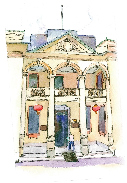 离工作室不远,便是建于民国时期的沙涌华侨医院旧址。米黄色米石外墙十分光鲜,似乎重新粉刷过,欧式柱阳台与门廊装饰甚少,线条简洁而有种肃穆的感觉。现在的医院旧址为中山市南区民间文艺展览馆,兼洪家拳、莫家拳、气功等训练基地。空间活化,这或许是现在老建筑最好的保存方式了。