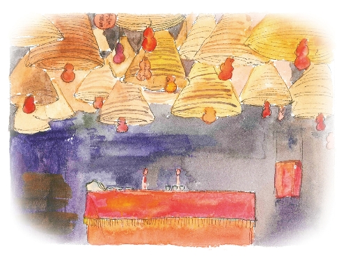 香盘绕出青丝,祝愿卡带着人们美好的祝愿旋转着