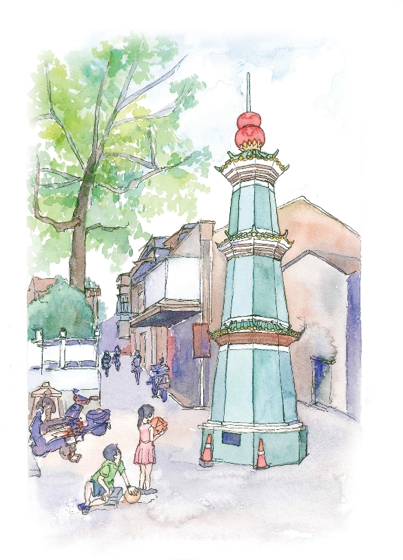 谿角古塔镇守在小街拐角处,是一座鲜亮的路标