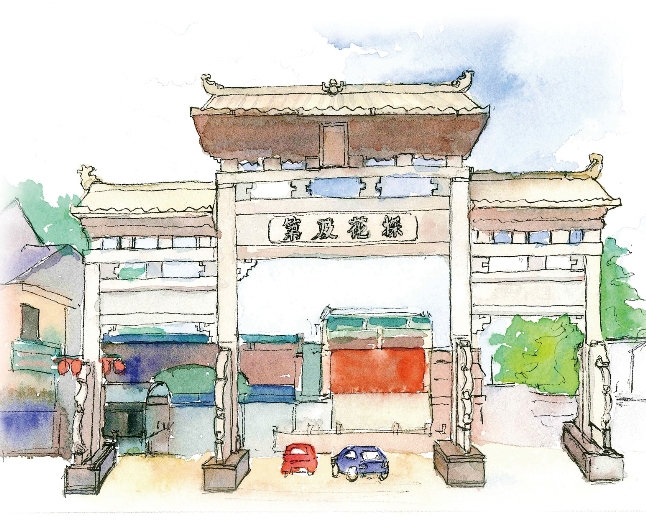 龙瑞粥城前的探花及第牌坊送迎着每一位食客与游人