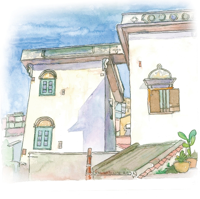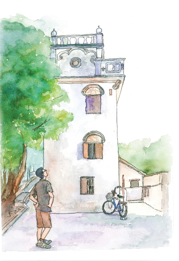 正当饶有兴味地细细观察之时,一老妇人从旁经过。她友善地对我微笑,与之攀谈,得知她原来是旁边90号的房主(欧氏的邻居)。她向我讲述了这幢碉楼的记忆。