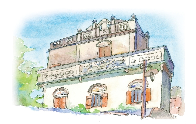 围墙内一丛枝叶浓密的竹子和一棵硕果累累的仁稔树,阻隔了那幢低调的碉楼,从街上是不大能看见的。我一度怀疑,是否找错了地方,隔着围墙引颈张望,仍未能窥见。没有门扇的门洞大开着,窄窄的,似是邀请,也有谢绝探访的意味。我冒昧地入内拜访,但在进门处停下来,等待着房主下达逐客令。然而院子里空无一人。熟透了的仁稔果落了一地,有的滚落沟渠,有的已被踩扁,杏黄色的果肉混着几颗灰白的种子,就这么赤裸地躺在那里,无人收拾。空气中弥漫着一股潮湿的霉味,凝滞在半空。靠门的一间小屋内显然住着一位保洁员,屋檐下晾晒的橙黄色马甲暴露了他的身份。