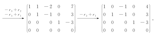 例2 用简化阶梯形矩阵解下列线性方程组.