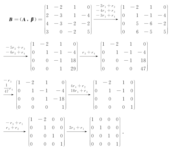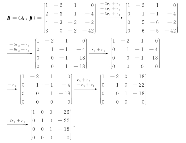 (2)求出增广矩阵B的简化阶梯形矩阵;