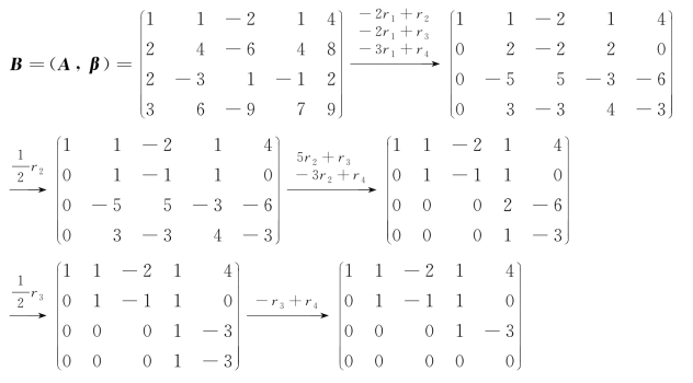 (1)用矩阵的初等行变换把A化为阶梯形矩阵B;