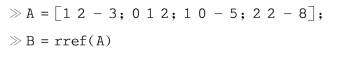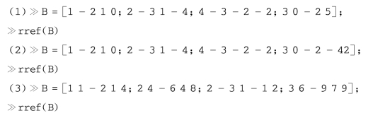 例2中用MATLAB软件求增广矩阵B的简化阶梯形矩阵,更为简便.程序为