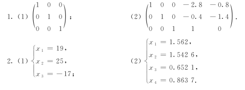 例2可以看出,将方程组转化成增广矩阵,用初等行变换,把增广矩阵化为简化阶梯形矩阵,从而达到解线性方程组的目的.这实际上与线性方程组的加减消元法是一致的.对增广矩阵施以初等行变换,相当于把原方程组变化成一个新的同解方程组.区别是,用矩阵解线性方程组,在书写上省去了未知数,只有未知数的系数和常数项参与运算过程.使用MATLAB软件求线性方程组增广矩阵的简化阶梯形矩阵,会使线性方程组的求解更为简便.
