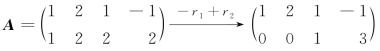 都是矩阵A的阶梯形,而且阶梯形的非零行的行数都是2.