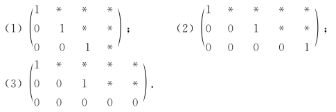 例3 根据下列线性方程组对应的增广矩阵,讨论方程组解的情况.其中*表示任意常数.