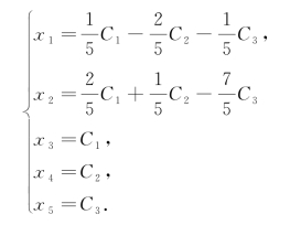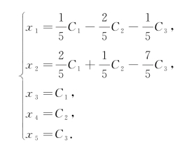 由于R(A)=2<n=5,故有非零解,原方程组同解方程组为:
