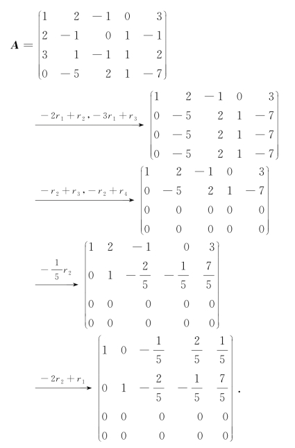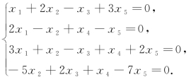 由于R(A)=2<n=5,故有非零解,原方程组同解方程组为