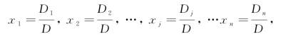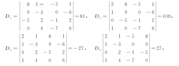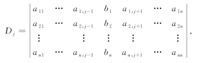 其中Dj(j=1,2,…,n)是把D中的第j列用方程组等号右端的常数项b1,b2,…,bn代替后得到的行列式.即