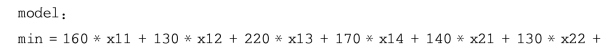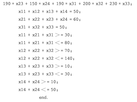 求解以上线性规划问题,在LINGO下新建一个模型文件,直接输入: