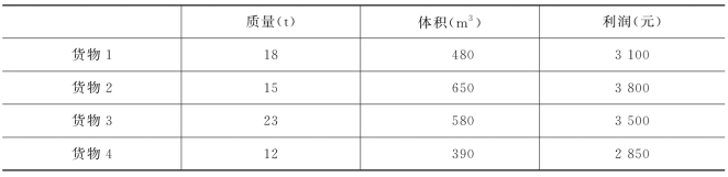 现有四类货物供该货机本次飞行装运,其有关信息见表6-18,最后一列指装运后所获得的利润.