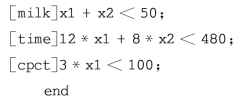 牛奶的需求量满足(50-6,50+10)即(44,60).并且,牛奶的允许范围需要劳动时间保持480h不变.