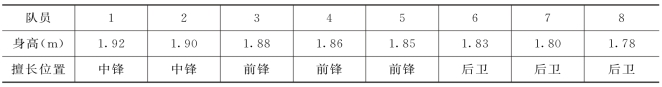 篮球队要选择5名队员上场组成出场阵容参加比赛.8名篮球队员的身高及擅长位置见表6-22.