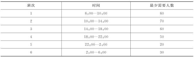 某昼夜服务的公交路线每天各时间区段内需司机和乘务人员见表6-23.