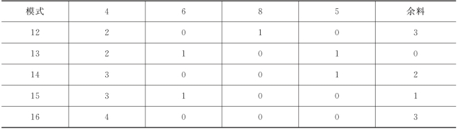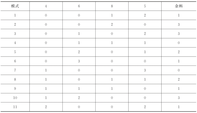 首先分析1根19m的钢管切割为4m,6m,8m,5m的钢管的模式,所有模式相当于求解不等式方程