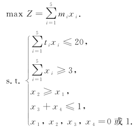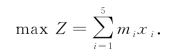 设各项设计任务的完成时间为ti(i=1,2,…,5)表示,设计报酬为mi(i=1,2,…,5)表示.则容易得到目标函数