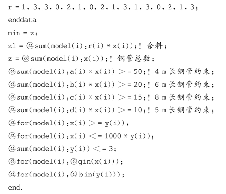 决策变量用xi表示按照第i种模式(i=1,2,…,16)切割的原料钢管的根数.