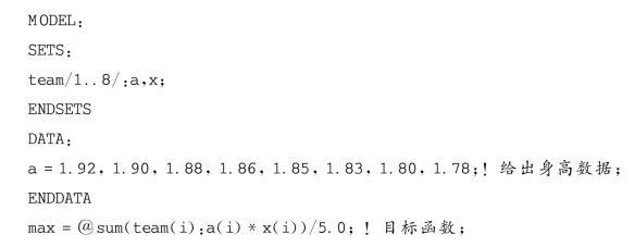 设各队员的身高分别用常数ai(i=1,2,…,8)来表示,则目标函数很容易给出