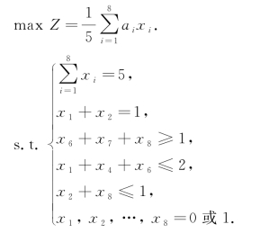 2号和8号至少有1个不出场,即2号和8号至多出场1个.用约束条件来表达就是:x2+x8≤1.