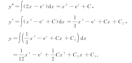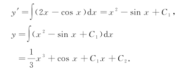 例2 求解微分方程y″=2x-cosx在y|x=0=1,y′|x=0=2的特解.