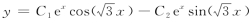(3)当p2-4q<0时,方程的根为r=α+βi.则y=e(α+βi)x是方程(8.5.2)的解,其通解为y=eαx(C1cosβx+C2sinβx).