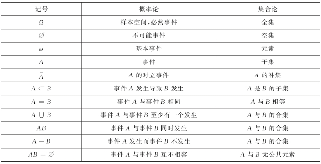 表9-1 事件的运算和集合的运算的关系