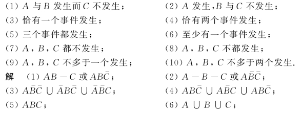例5 设A,B,C为Ω中的随机事件,试用A,B,C表示下列事件.