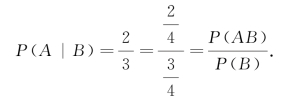 这虽然是一个特殊的例子,但是容易验证对一般的古典概型,只要P(B)>0上述等式总是成立的,同样对几何概率上述关系式也成立.