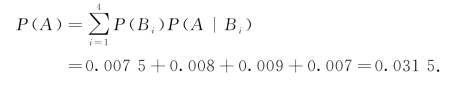 解 A={抽到的是不合格品},B={抽到的是i号生产线的产品},i=1,2,3,4,显然P(B1)=0.15,P(B2)=0.2,P(B3)=0.3,P(B4)=0.35;