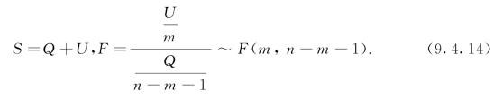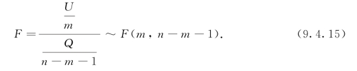 其中Q是由式(9.4.10)定义的残差平方和,反映随机误差对y的影响,U称为回归平方和,反映自变量对y的影响.